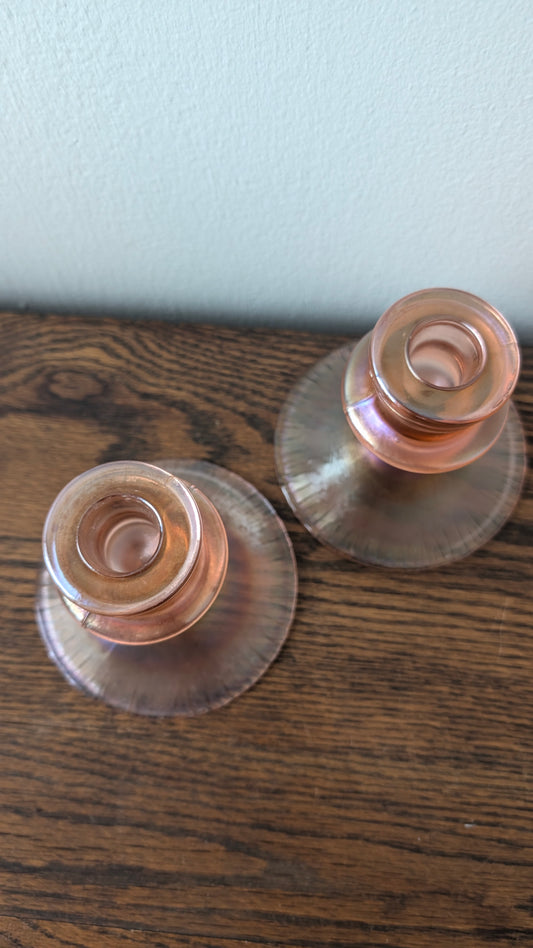 Pink Iridescent Fenton Stretch Glass Candlesticks (pair)