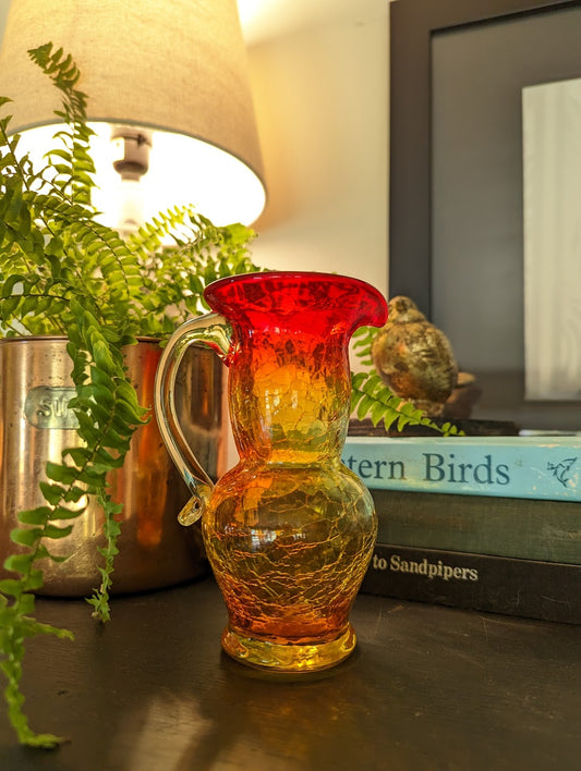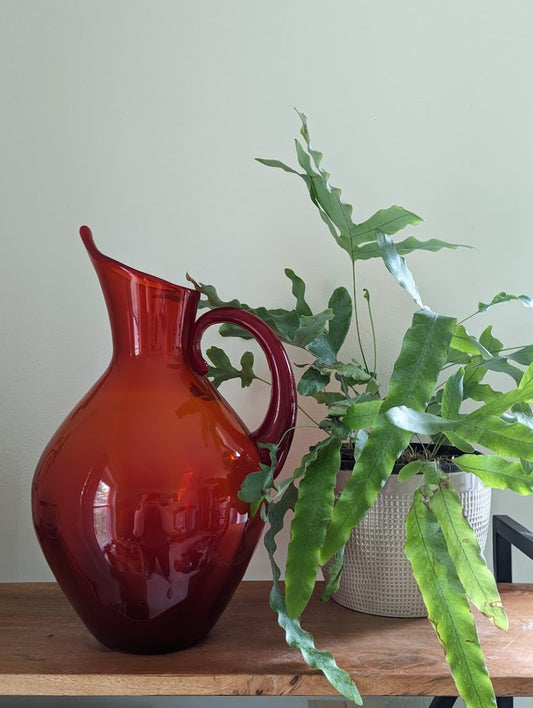 Blenko Optic Pitcher 991 in Tangerine with applied handle