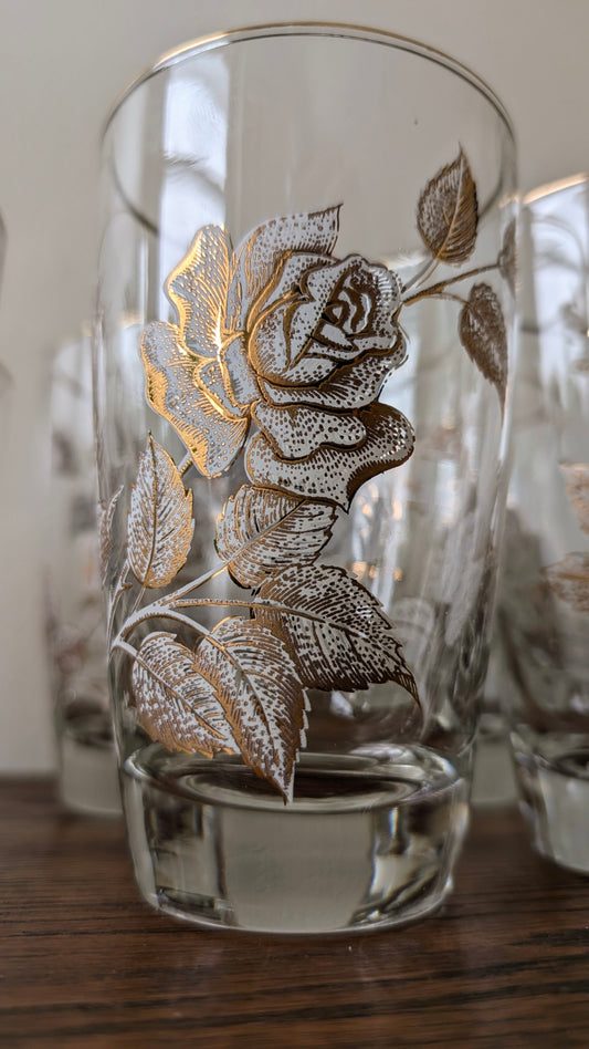 Libby Gold & White 'Rose Bouquet' Tumblers (set of 6)