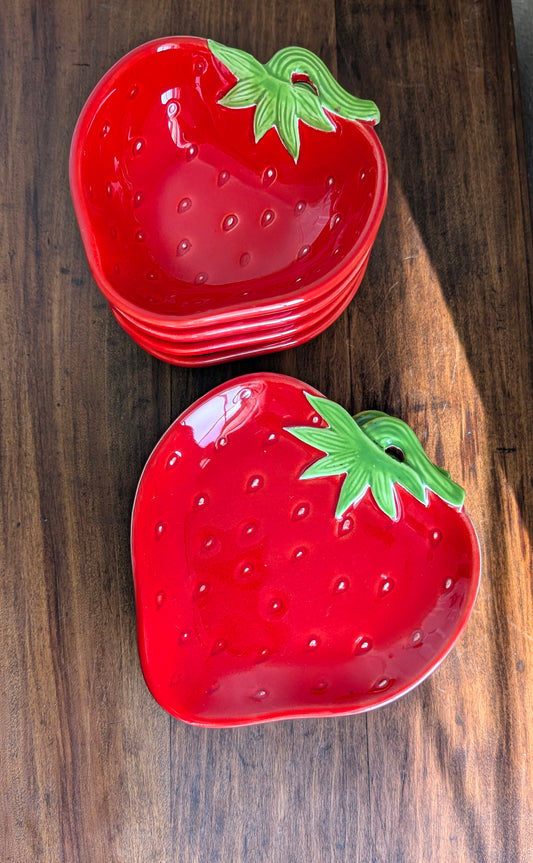 Japanese Ceramic Strawberry Snack Bowls & Plates (set of 8)